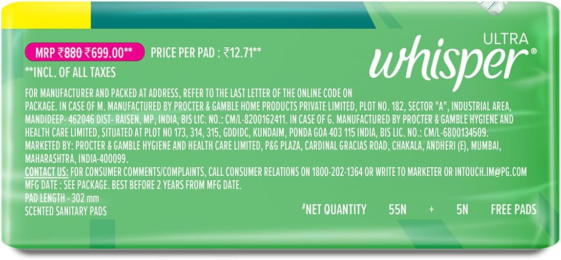 Whisper Ultra Clean Sanitary Pads XL Plus 60 Units