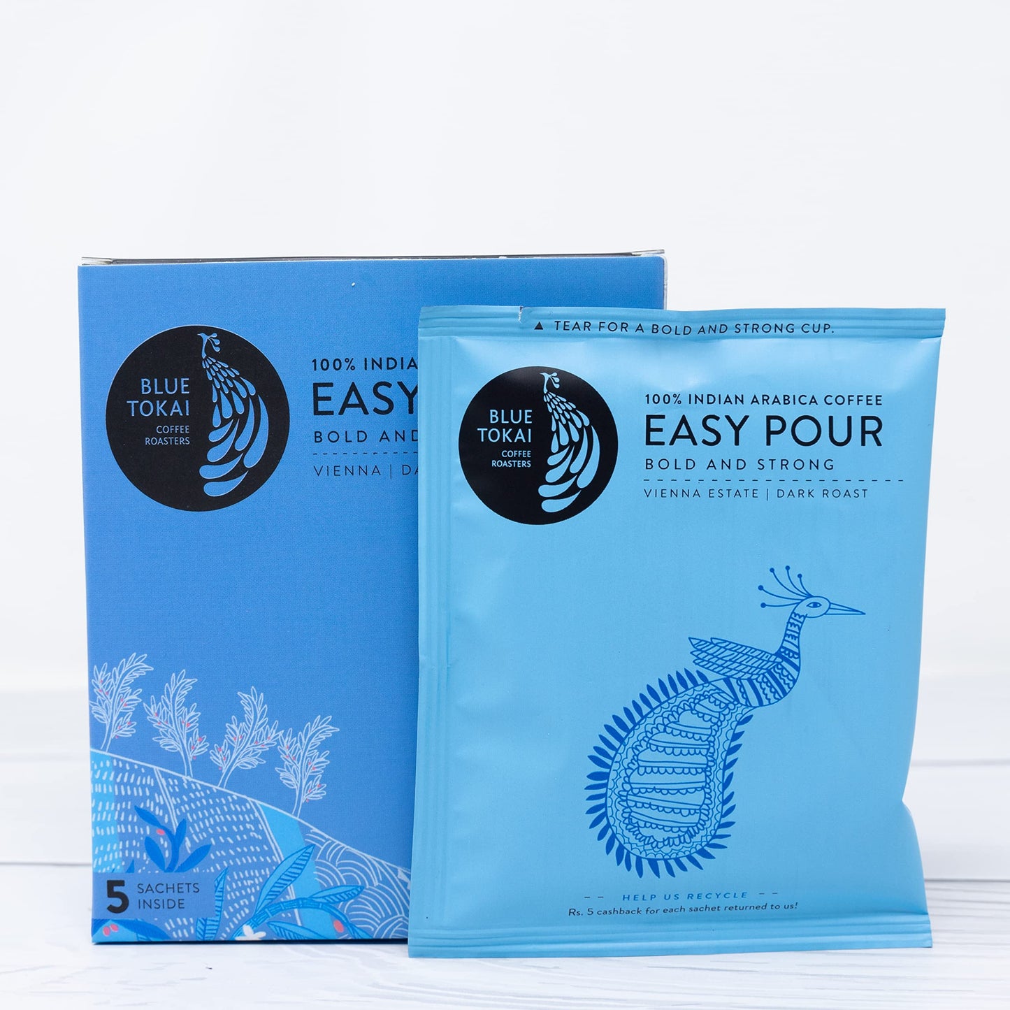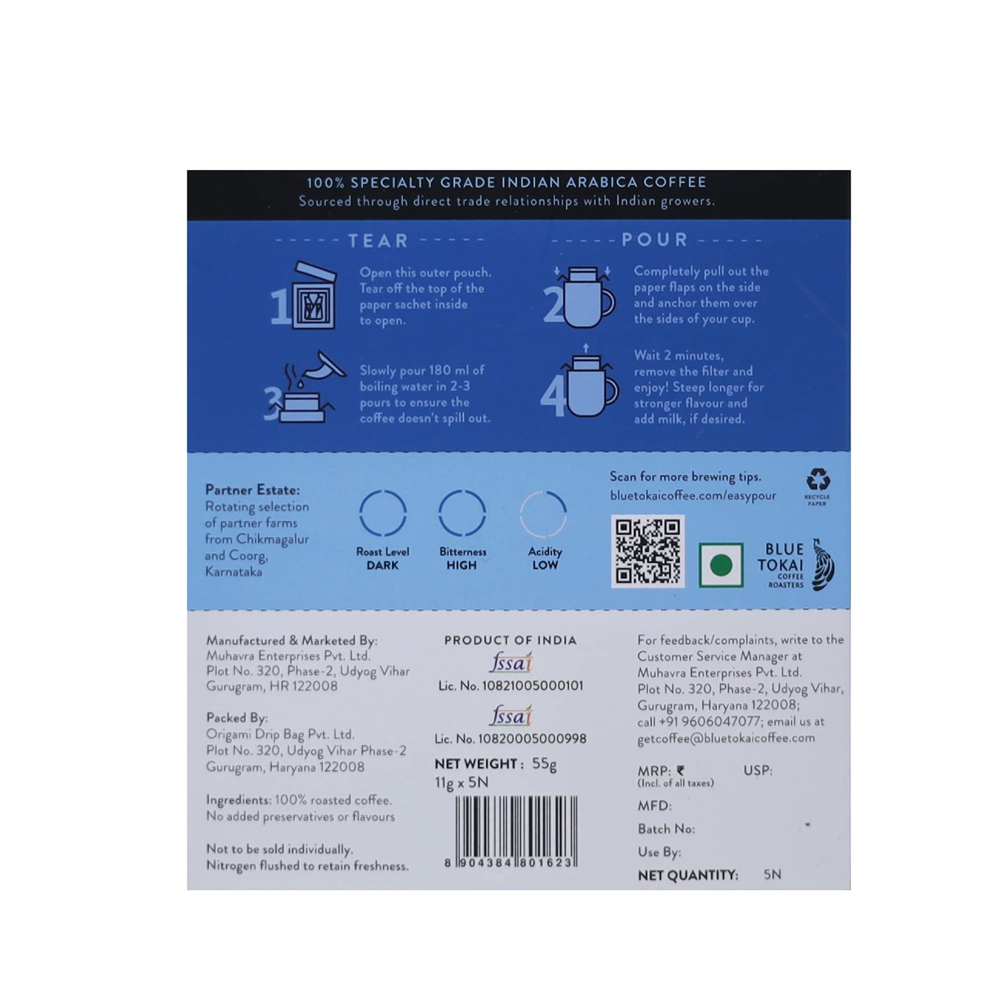 قهوة بلو توكاي روسترز سهلة الصب، تحميص فيينا | قوية وقوية | تحميص داكن | عبوة من ٥ أكياس | ١٠٠٪ أرابيكا خاصة | صب الماء الساخن فقط