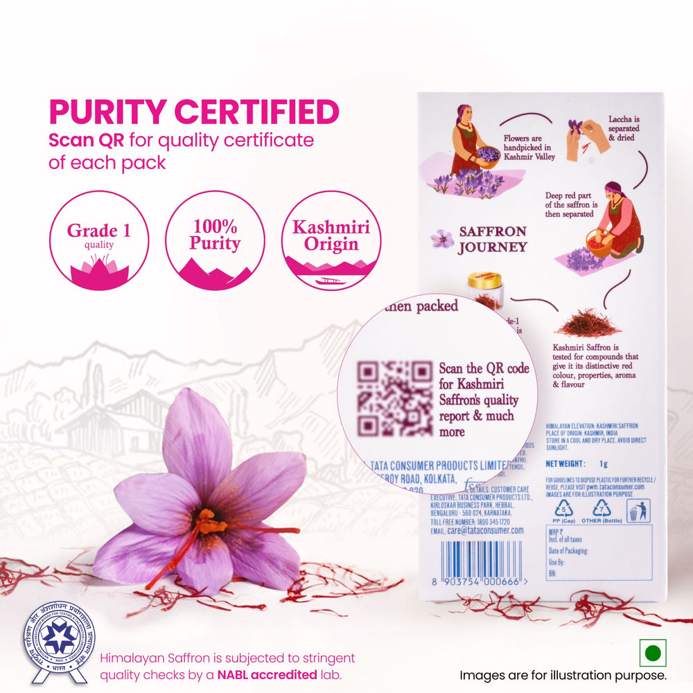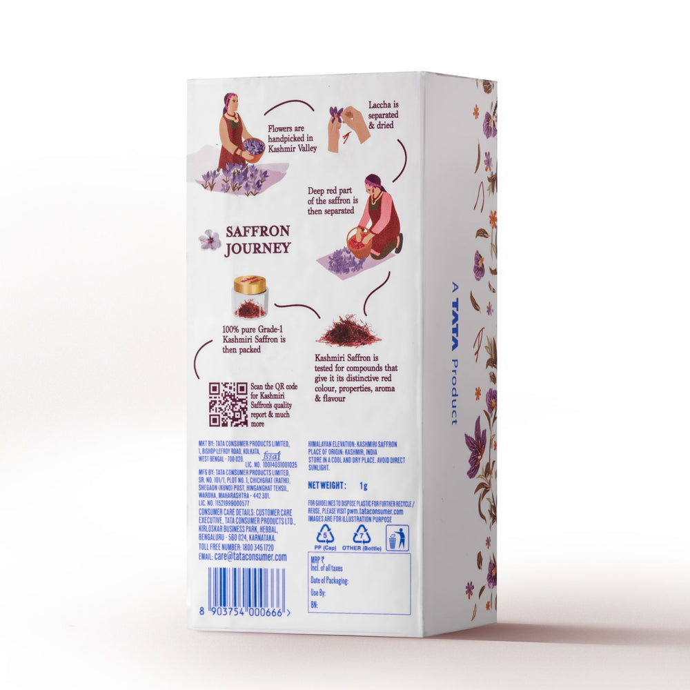ينبع الزعفران الرائع لدينا من وادي كشمير الأخضر ومن منزل تاتا بكل فخر، ويقدم ضمانًا بأنه نقي بنسبة 100%.