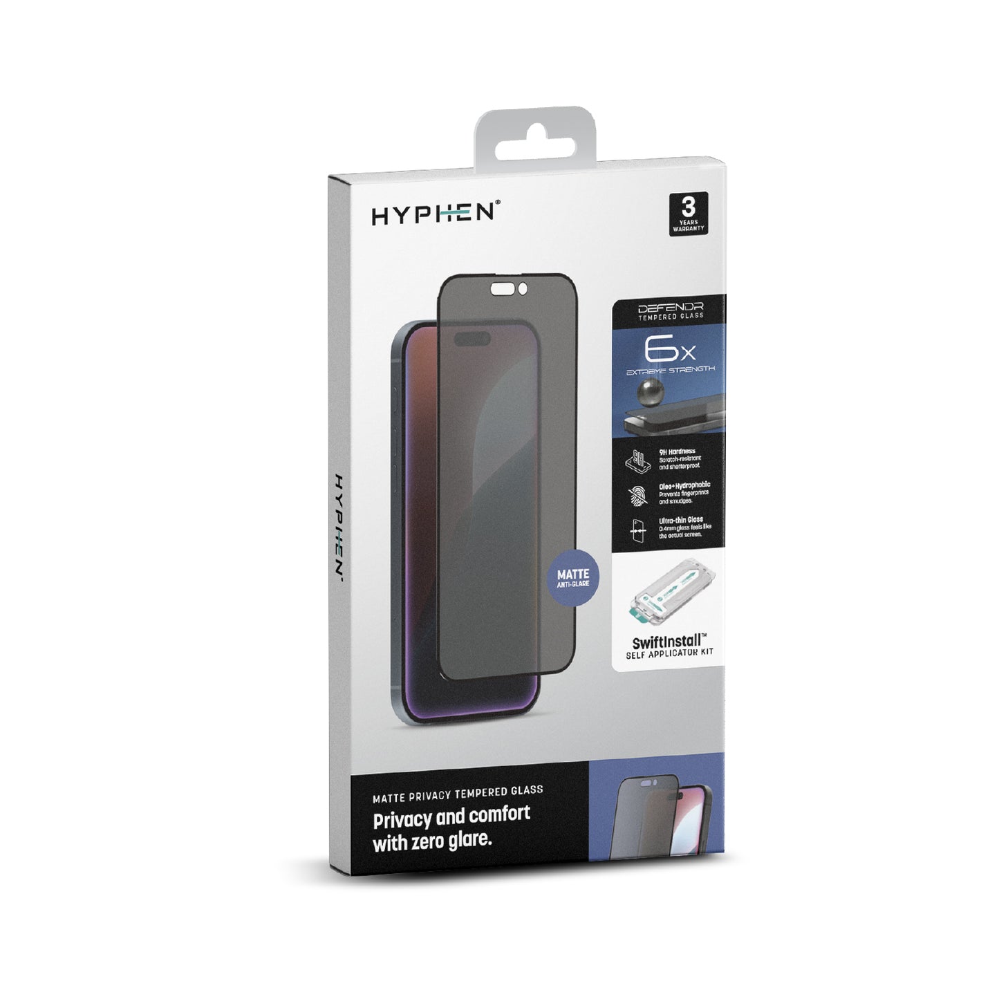 واقي شاشة HYPHEN DEFENDR من الزجاج المقسّى غير اللامع لحماية الخصوصية مع أداة تطبيق - iPhone 16 - 6.1 مع أداة تطبيق GRS