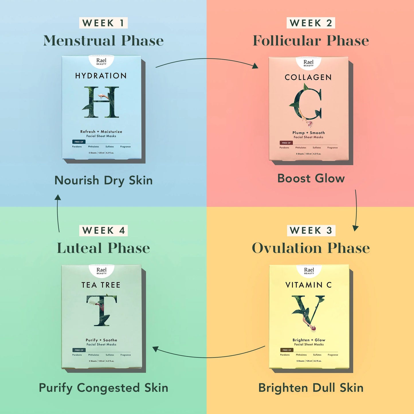 When your skin could use a little extra care, reach for our Collagen Sheet Masks. Made with breathable bamboo-derived material and infused with a blend of Hydrolyzed Collagen, Wheat Amino Acids, and Licorice Root Extract, these masks help hydrate and smooth the look of skin for a refreshed, plumper appearance. Each set includes 5 sheet masks.